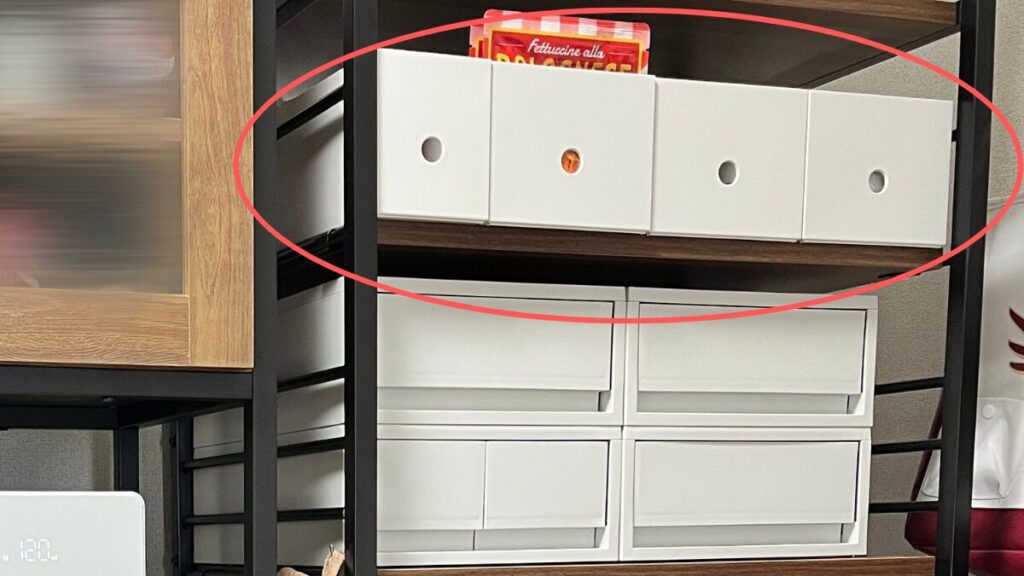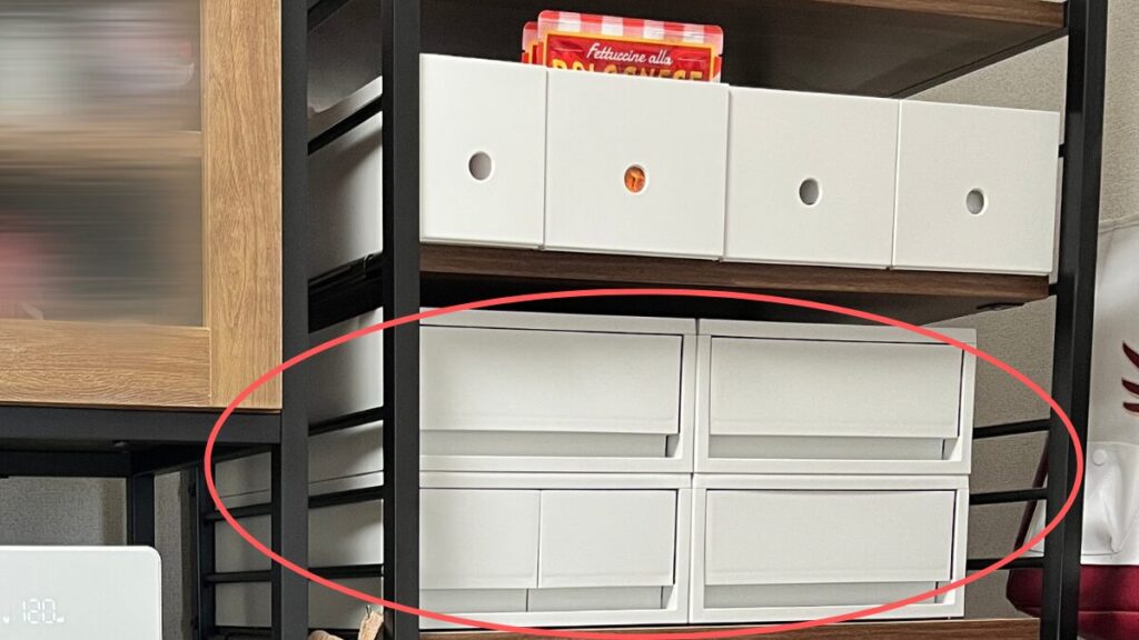 ニトリでスチールラックとプラスチックの引き出しを購入して使用していました!